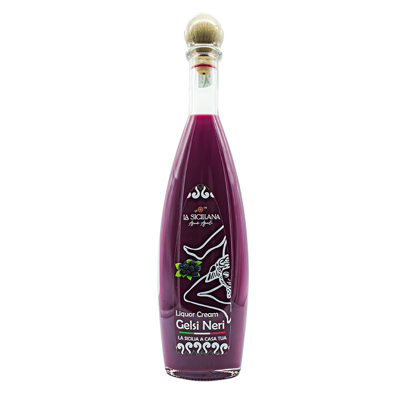 Deliziosa crema liquorosa ai gelsi, realizzata artigianalmente in Sicilia secondo un'antica ricetta locale. Da servire rigorosamente fredda, la crema ai gelsi neri è disponibile in bottiglia da 500ml. Questo liquore ottenuto dall'infusione di gelsi neri freschi si contraddistingue per il suo sapore intenso e unico, e per la sua consistenza cremosa irresistibile. Un prodotto genuino che racchiude il sapore e l'aroma di uno dei frutti tipici dell'isola.